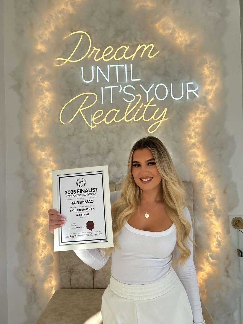 Meet Mia, owner of 'Hair By MAC' who is a highly skilled and passionate hairdresser and certified hair extension specialist, who is dedicated to achieving your dream hair. Recently named a finalist for the Hairstylist of the Year award, Mia continues to bring creativity, expertise, and personalised care to every appointment - offering a range of premium services such as tape in, nano and weave extensions as well as amazing colour transformations.